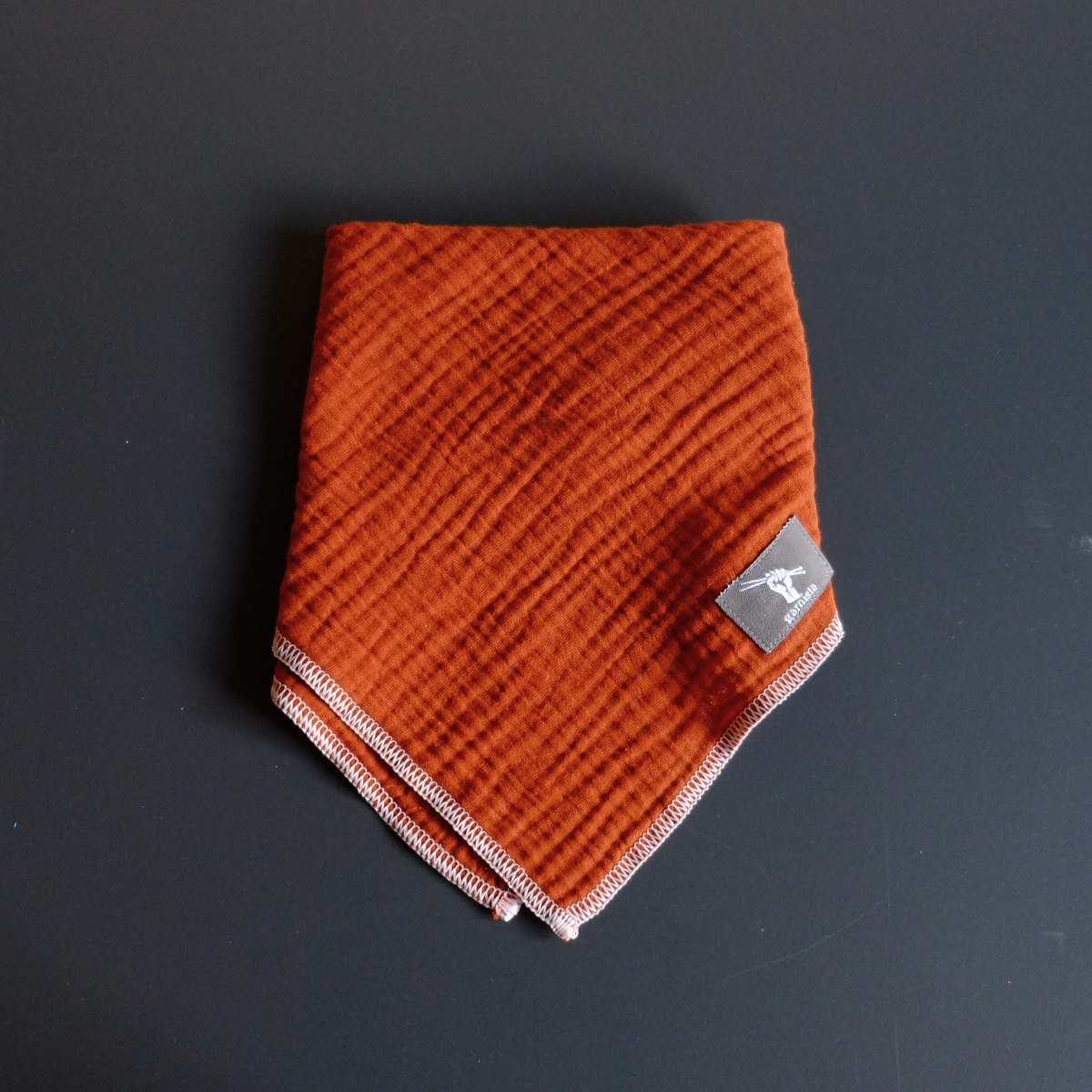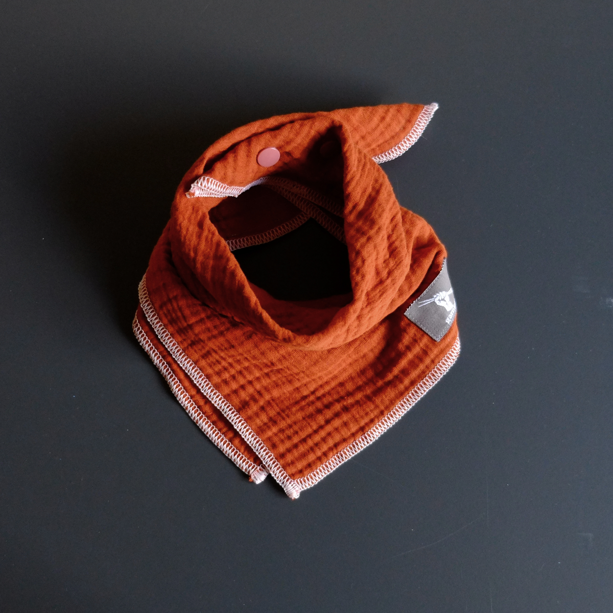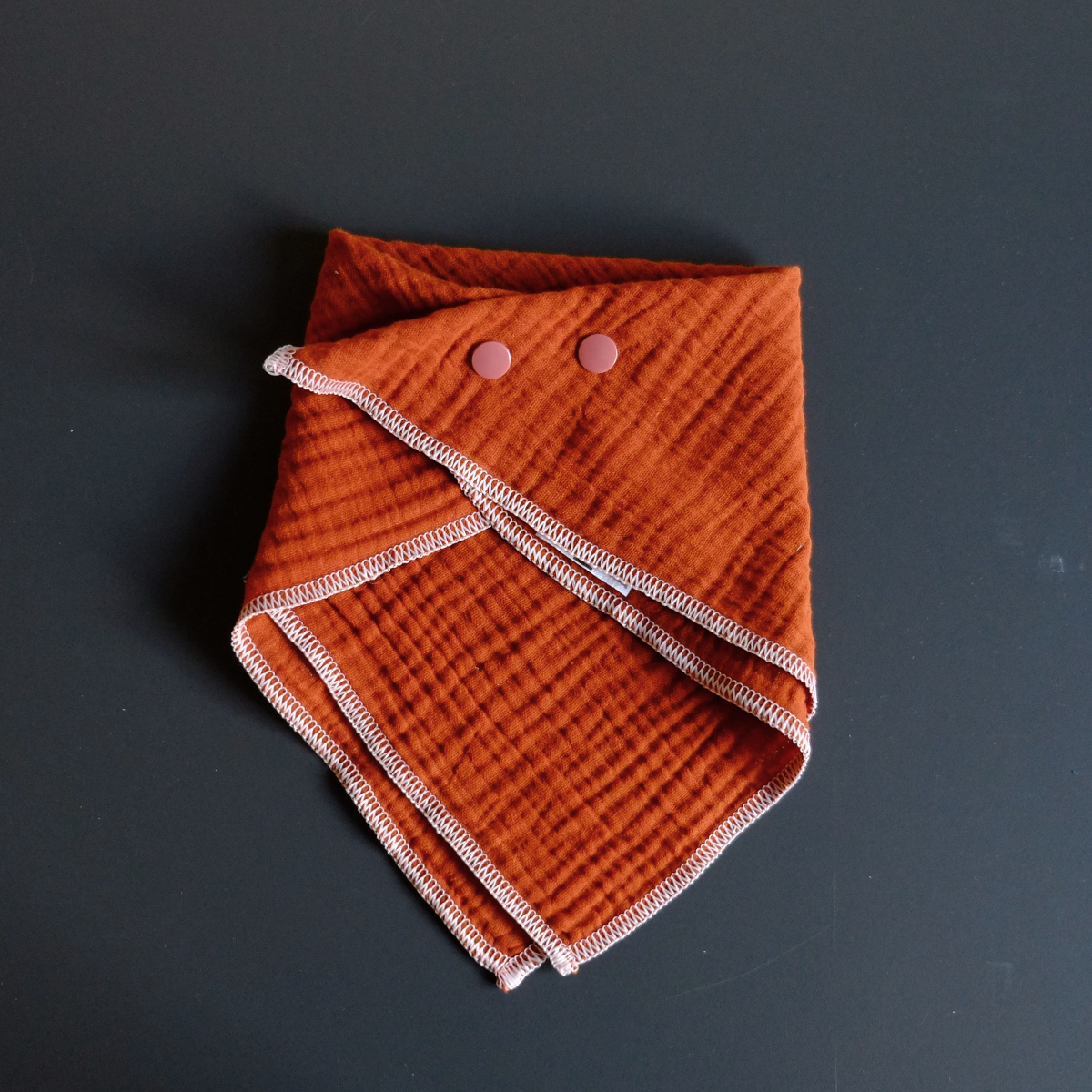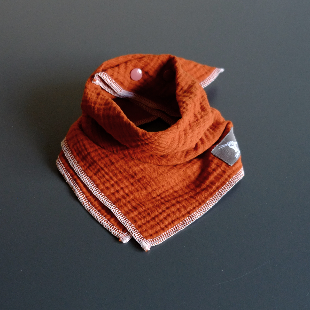 Kinder-Halstuch mit Druckknöpfen aus Bio-Baumwoll-Musselin | Rostrot mit Naht in Hell-Rosé