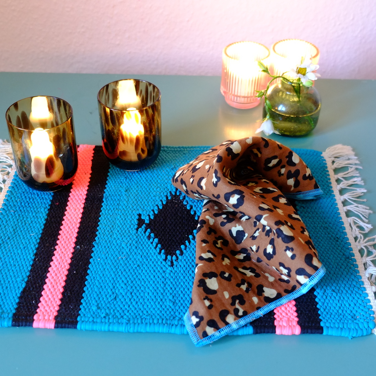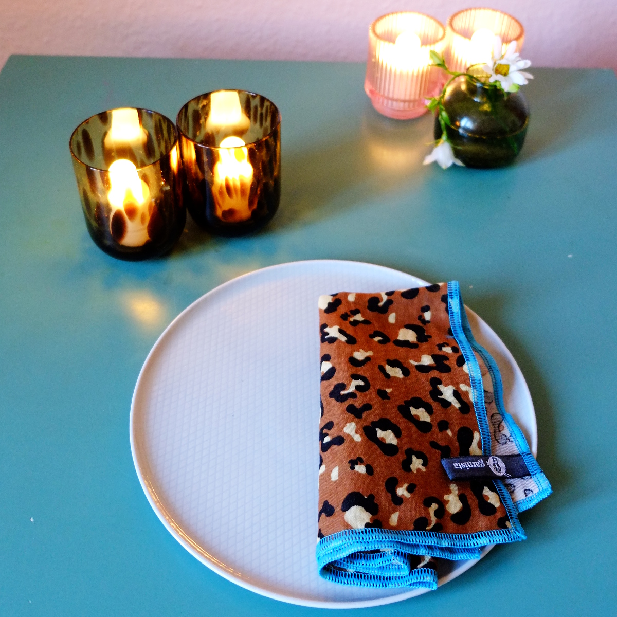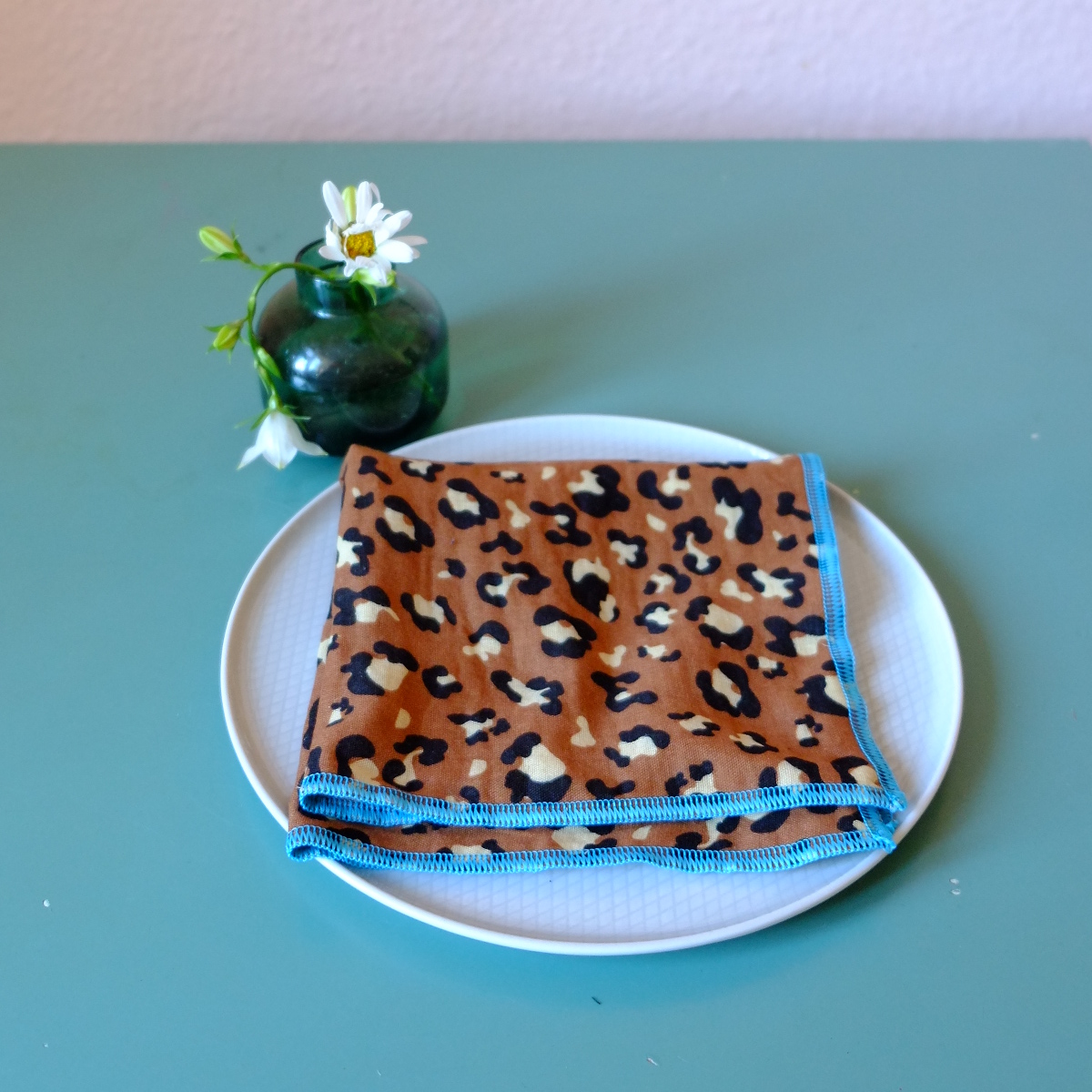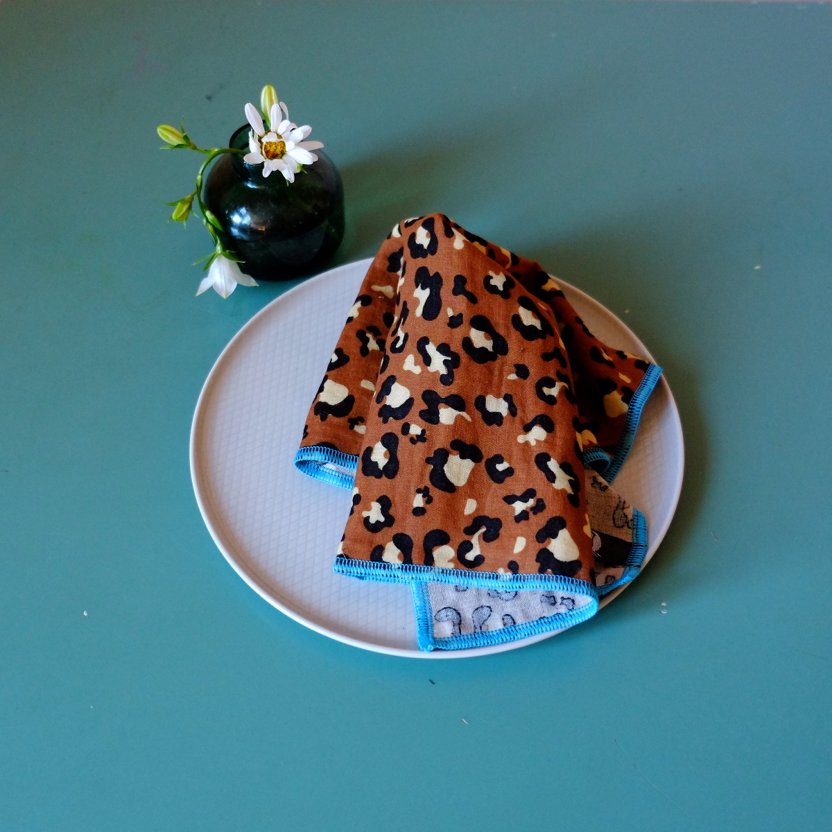 Stoff-Serviette aus Bio-Musselin | Leoparden-Muster & Türkis